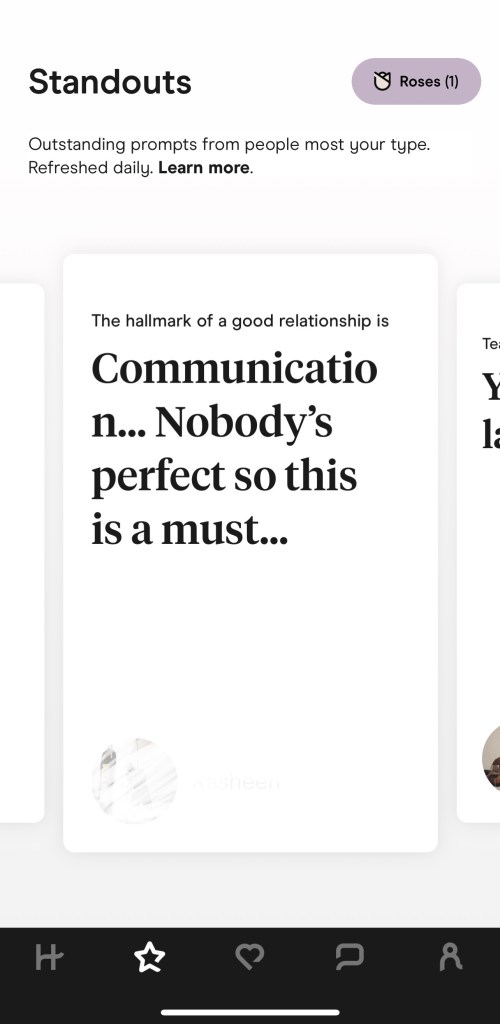 - User-friendliness: The app is very easy to use. When you make an account, it prompts you to fully set up your profile so that you get more matches, and they added new features to make the experience more successful in your search for love. You also get a daily “most compatible”; this person matches your preferences and may also be a good match to check and see if there are sparks there. However, this algorithm isn’t perfect, so sometimes there are duds.